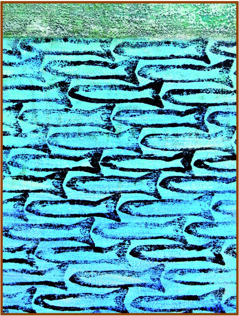 »Sardinenschwarm«, 2025, Acryl auf Leinwand, 60 x 80 cm