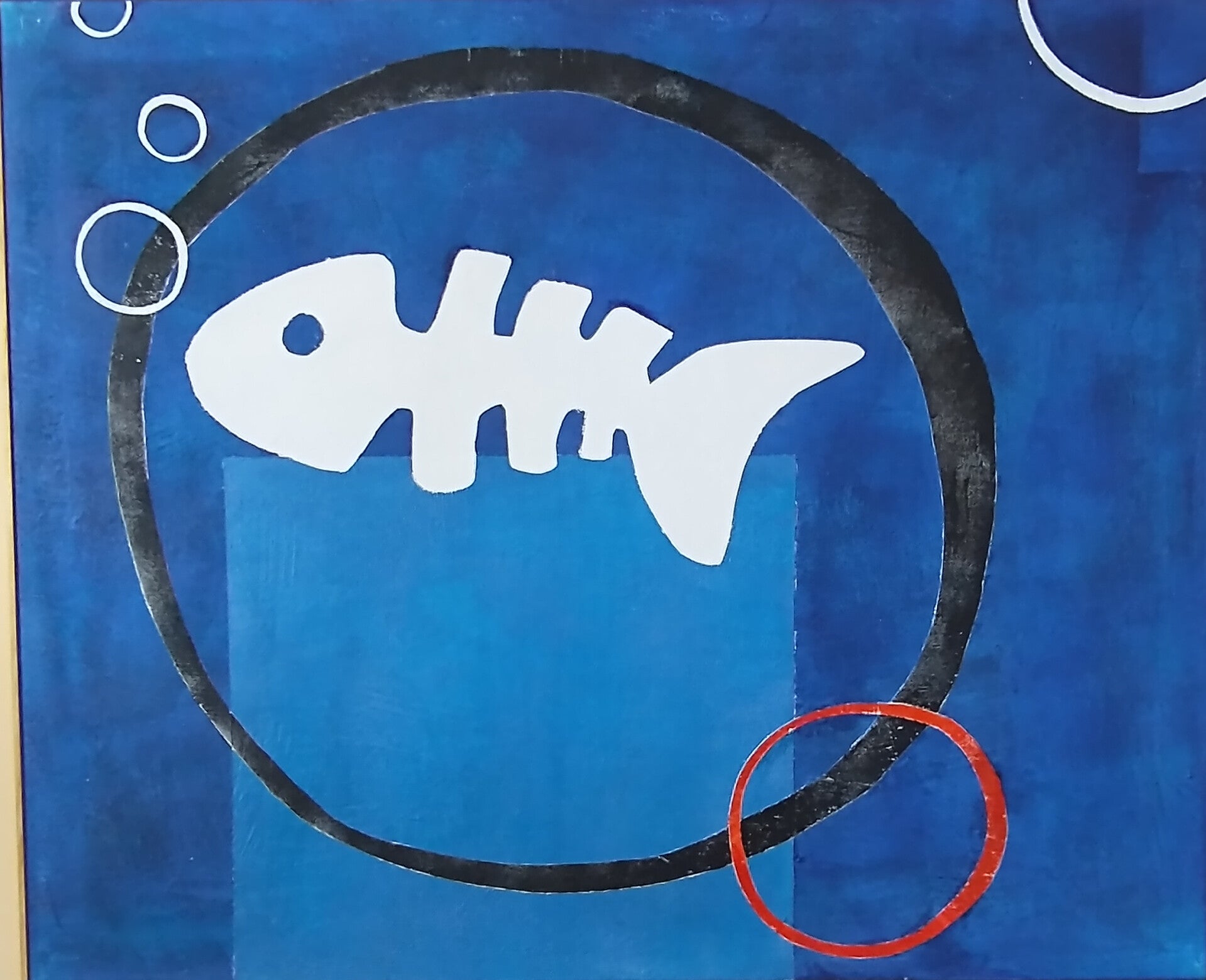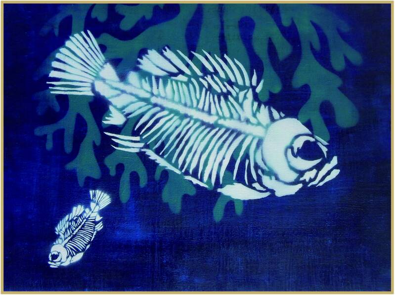 »Fischschwarm á la B.«, 2025, Mischtechnik/Acryl auf Leinwand, 60 x 80 cm