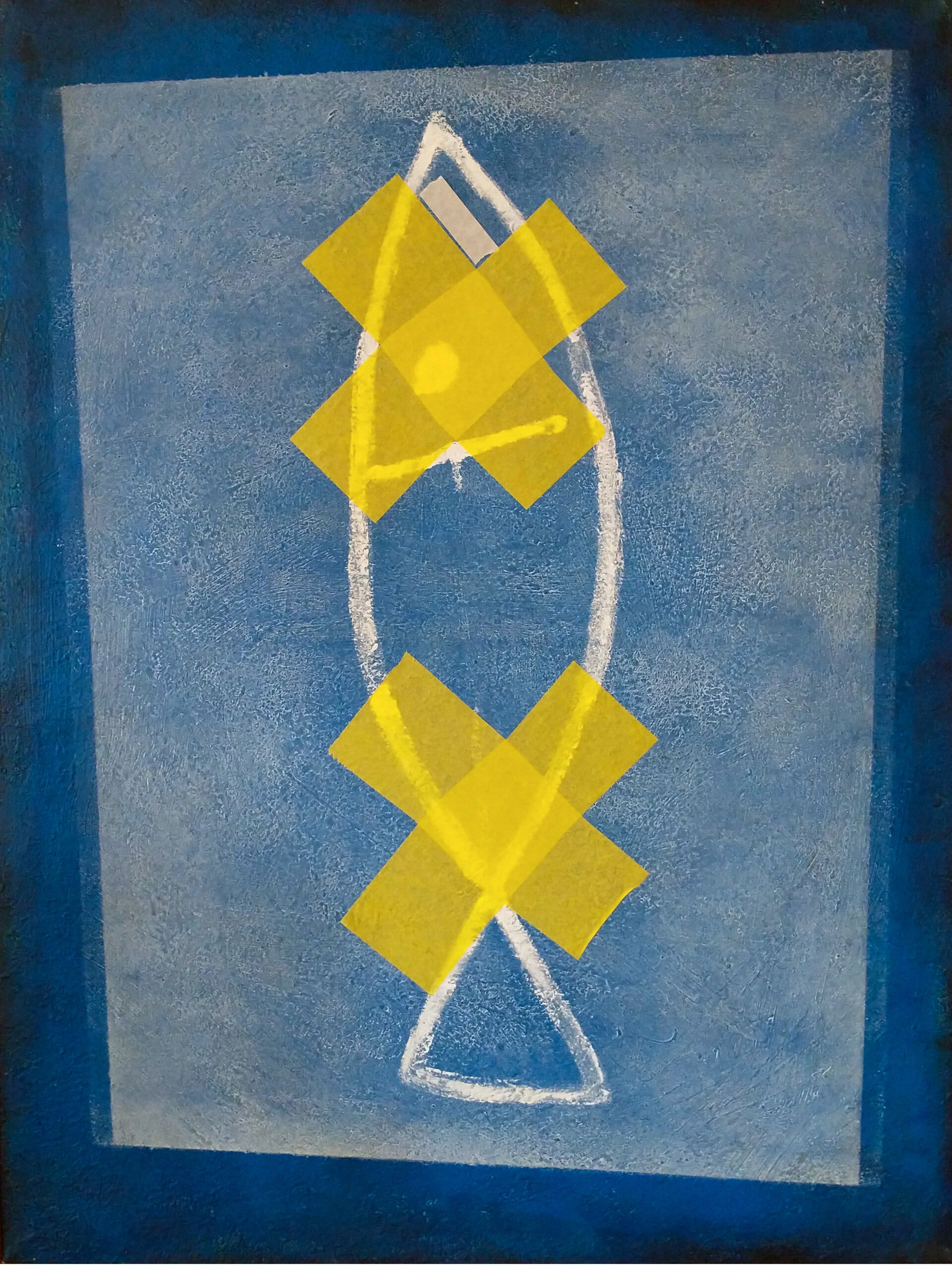 »Enfermo«, 2026, Acryl auf Leinwand und gelbes Seidenpapier, 60 x 80 cm